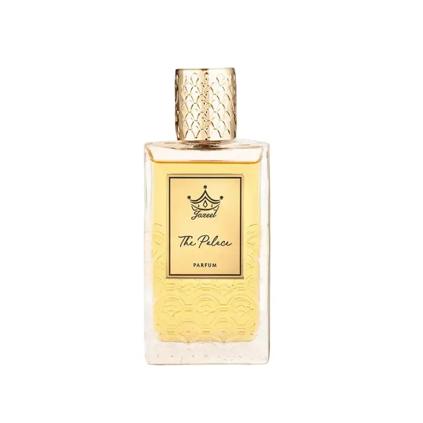 JAZEEL The Palace : Inspiré par le Qasr Al Watan, The Palace incarne l'opulence et la noblesse. Sa composition reflète la richesse culturelle et architecturale du palais, avec des notes qui rappellent les matériaux précieux et les atmosphères solennelles des lieux royaux.
