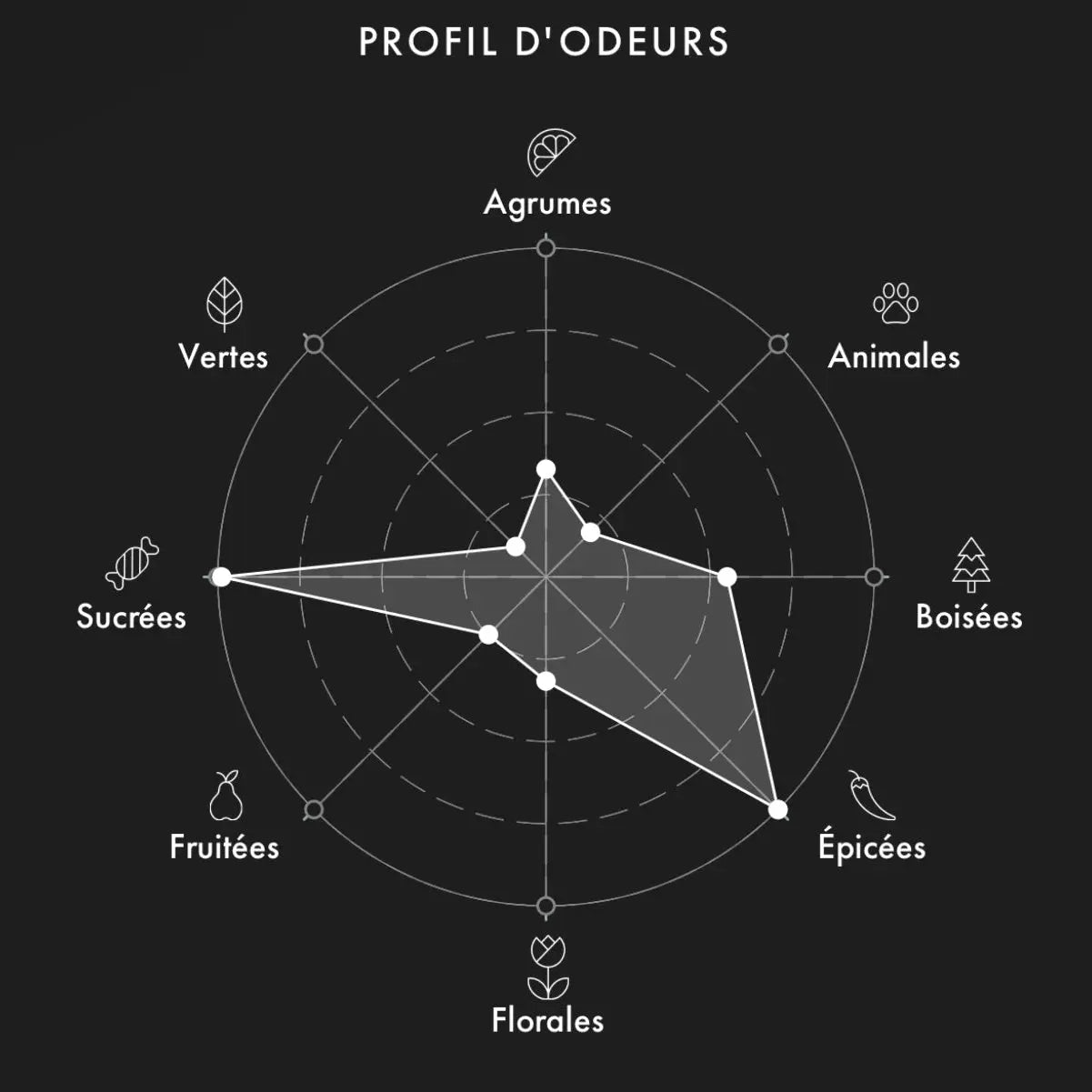 - Famille Olfactive : Gourmand, Épicé Chaud